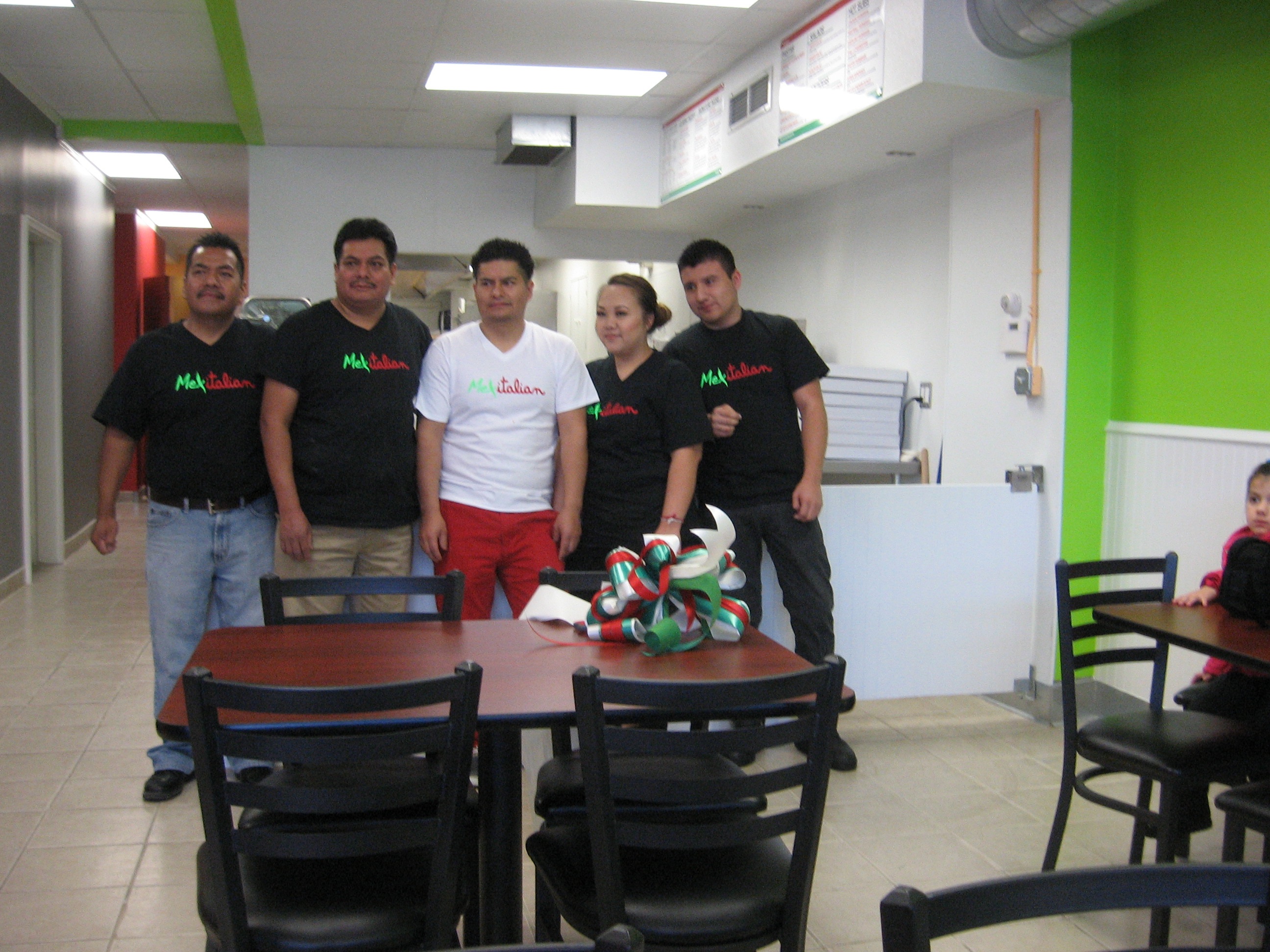 I saw posters on the former Otra Cocina storefront saying “Mexitalian Pizzeria Coming Soon.” Then a Facebook post said the restaurant was having a grand opening on the third of December and that there would be free samples. You better believe I was on my way up Payne to get there when the doors opened at 11:00. Outside there was a ribbon-cutting ceremony and I was invited to be photographed with the group. Inside were eight tables for four and a large screen TV that was emitting Mexican music. The decor was primarily red, green and white—the colors of the Mexican flag. There I met Yolanda from the Latino Economic Development Center (LEDC) and she filled me in on some details about the ew owners. They are three brother- Oliverio, Teo and Domingo Casiano-who came here from Puebla, Mexico. Their research showed the top cuisintrends that were now Italian and Mexican. They created a name to reflect their fusion approach to both traditions. The LEDC gave technical support and loans to make their East Side dreams become a reality. Here’s some of the menu: appetizers with wings, garlic knot and Stromboli (a sort of turnover filled with cheese and Italian meats) and a grilled chicken marinated with Mexican spices. The sauce choices tell it all: enchilada, tomato, hot salsa and roja. Toppings include chorizo, meatballs, cornitos, mushrooms and pepperoni. Several “Signature Pizzas” include enfruolada –a vegetarian bean and taco pizza, a Pizza Poblano whose main ingredients are mild peppers and chorizada, a Mexican style sausage. “Classic Pizzas” include meat lovers, Philly cheese steak and chicken Alfredo. Some pastas are baked ziti, linguini garlic and oil. The seven hot subs include chicken, parmesan and eggplant parmesan. I had two sample slices of pizza. One was made with chorizo and Italian sausage. The other was topped with beans, cheese and green peppers. I also got two small bowls of different pastas. I accompanied the food with a mango flavored Jarritos. They had not yet started making the Italian pizzas for sampling when I was there. I may have to go back sometime to see if they do a good job of replacing the ones served a few blocks south at the now-shuttered Romolos.
